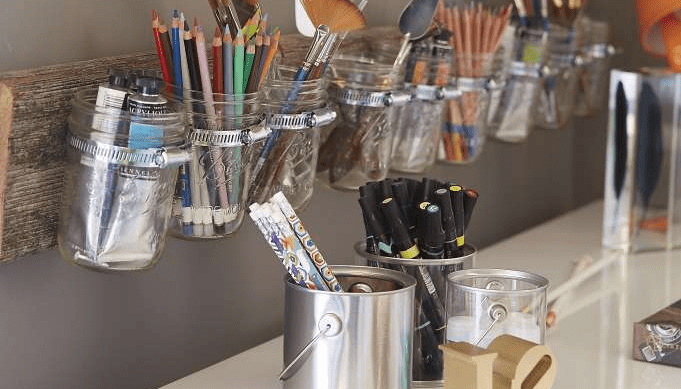 Consider large baskets or boxes that can be easily pulled in and out. Utilise the walls for vertical storage and to hide away any clutter. A peg board or cork board is a great idea for things like craft supplies and to display artwork. Even in the smallest spaces, there are plenty of desks on the market that allow for a desk to be folded away or against a wall when not in use, maximising your space.