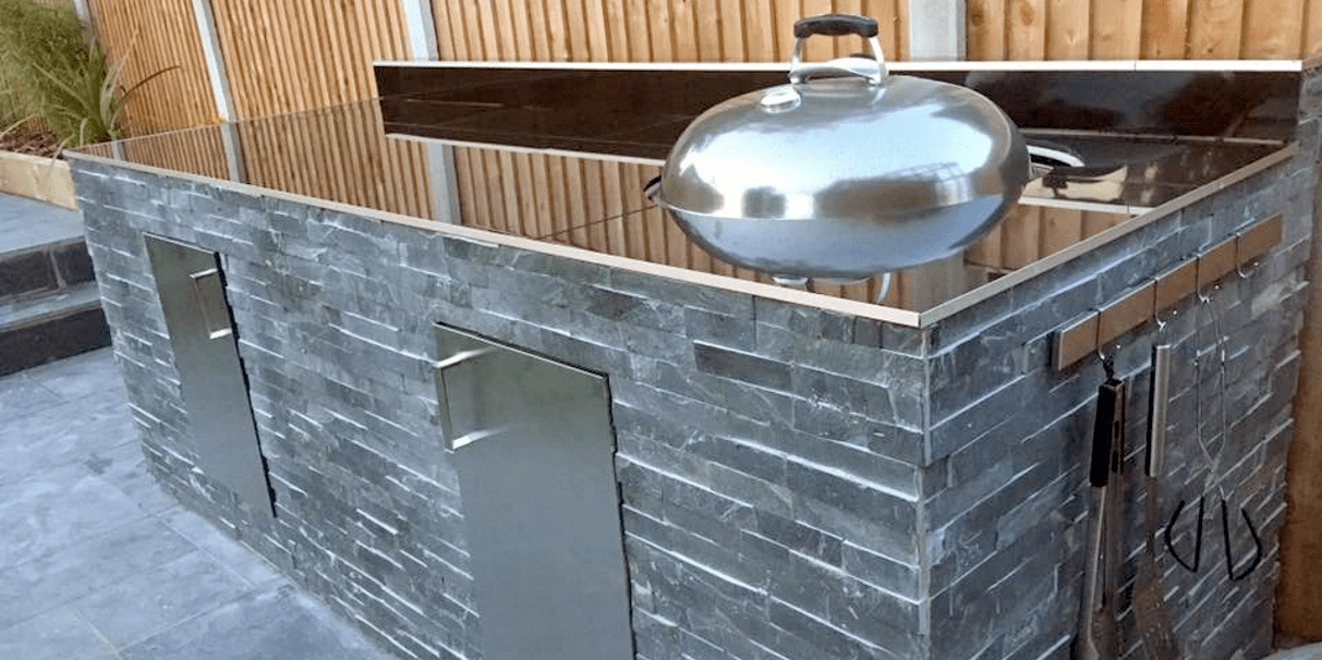 One of the most important elements of creating an outdoor kitchen is the practicality of the materials you use. Considering it will need to withstand everything the British climate throws at it – from the heat of the midday summer sun to the downpours we often get at the end of the season – using the right materials is paramount. You won’t have the option to use the same materials you would use in your kitchen indoors so you’ll need to ensure everything is weatherproof.