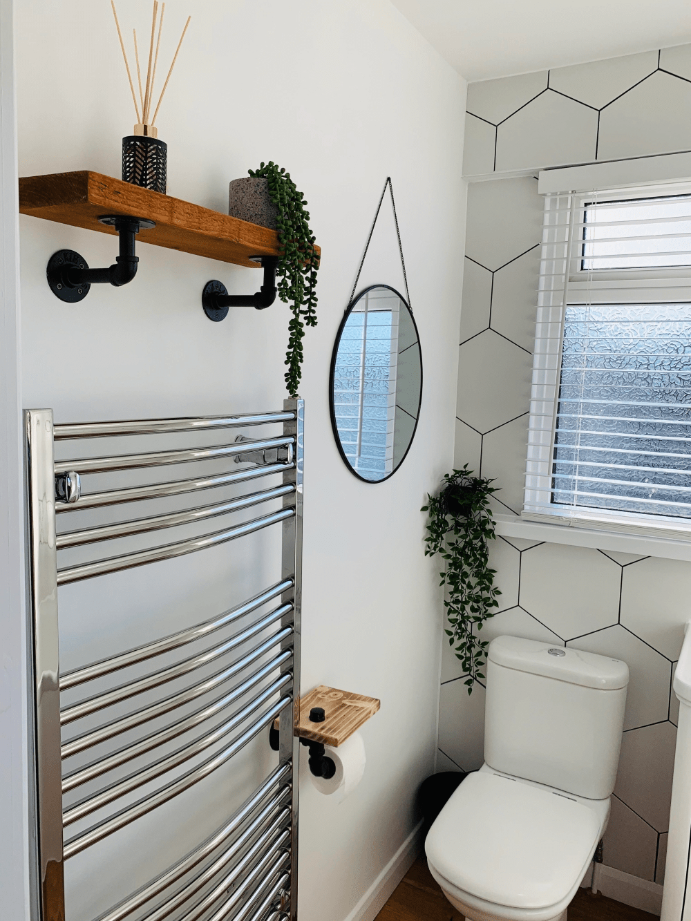 We purchased our first home last year and the bathroom desperately needed updating – it was dark and dated, hence why we chose the lovely bright white modern hexagon tiles to modernise it and brighten the room.