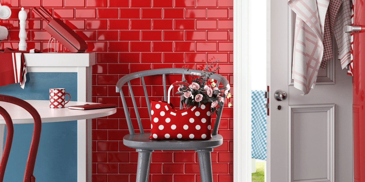 Nothing to do with Spring really, or green, for that matter. But … isn’t this cheerful?! Just a bit of perky colour to brighten the day. If your new tiling project needs a jolt of colour why not be outrageous and go for red? These are our Red Mini Metro Tiles – once again, easy to install and cut for anyone who isn’t yet a complete tiling expert. For similar floor tiles, take a look at our Hester range in Ocean.